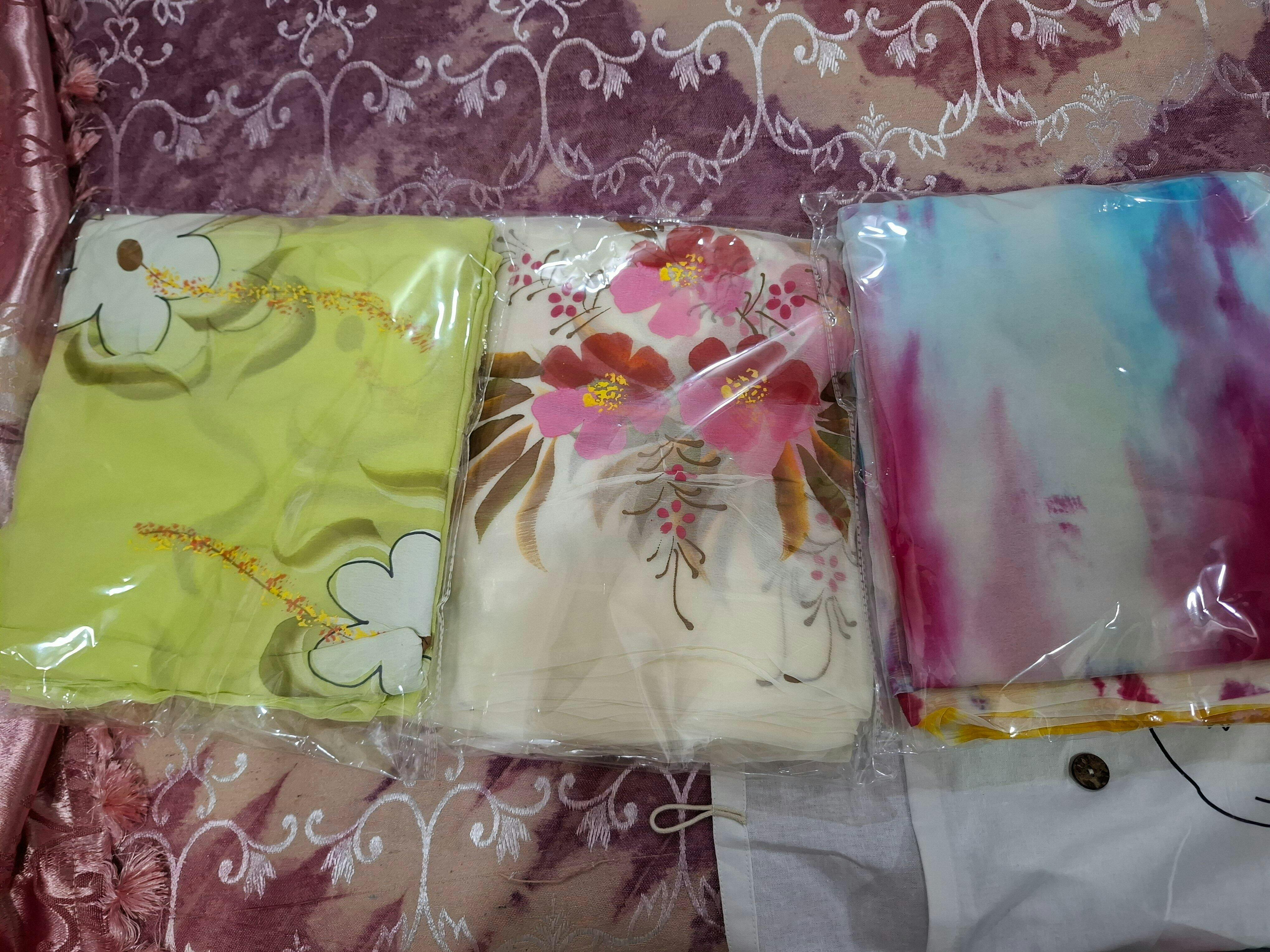 Diamond chiffon saree with hand dyed shibori pattern in beautiful colours.The saree comes with a plain blouse piece in Italian crepe.