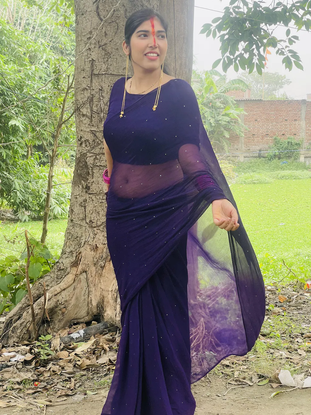 Purple Mukaish Saree